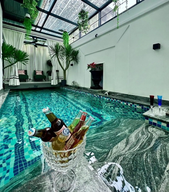 – Tầng trệt : Phòng khách , hồ bơi , bếp khô , bếp ướt .