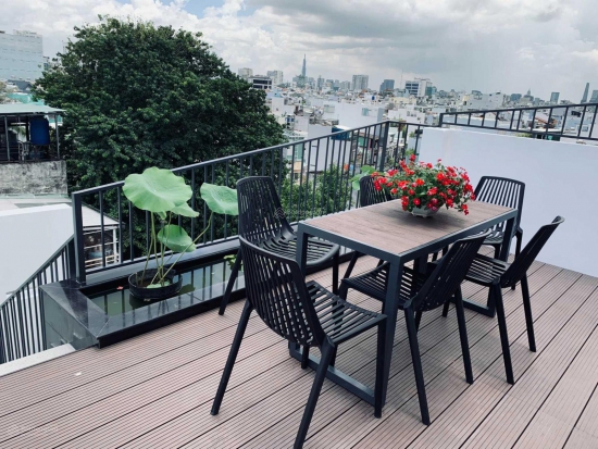 - Trệt cho thuê văn phòng, Lầu 1, 2, 3 là 12 căn hộ dịch vụ, Lầu 4, 5 là Penhouse 3pn, 3 sân thượng ăn uống, xông hơi... view đẹp: thấy Landmark81, Bitexco Quận 1.